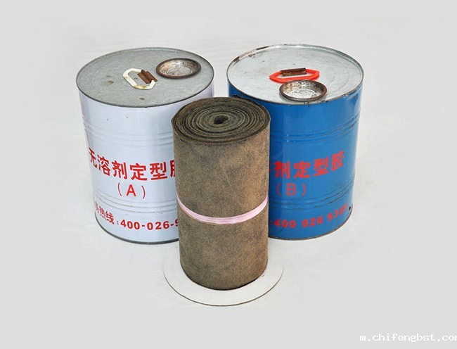 4、定型胶配用:将A、B组份定型胶按1∶1(重量比)充分搅拌混匀,静置停方5~10分钟后即用。切记:为确保防腐层等级厚度,定型胶切勿添加稀释剂。